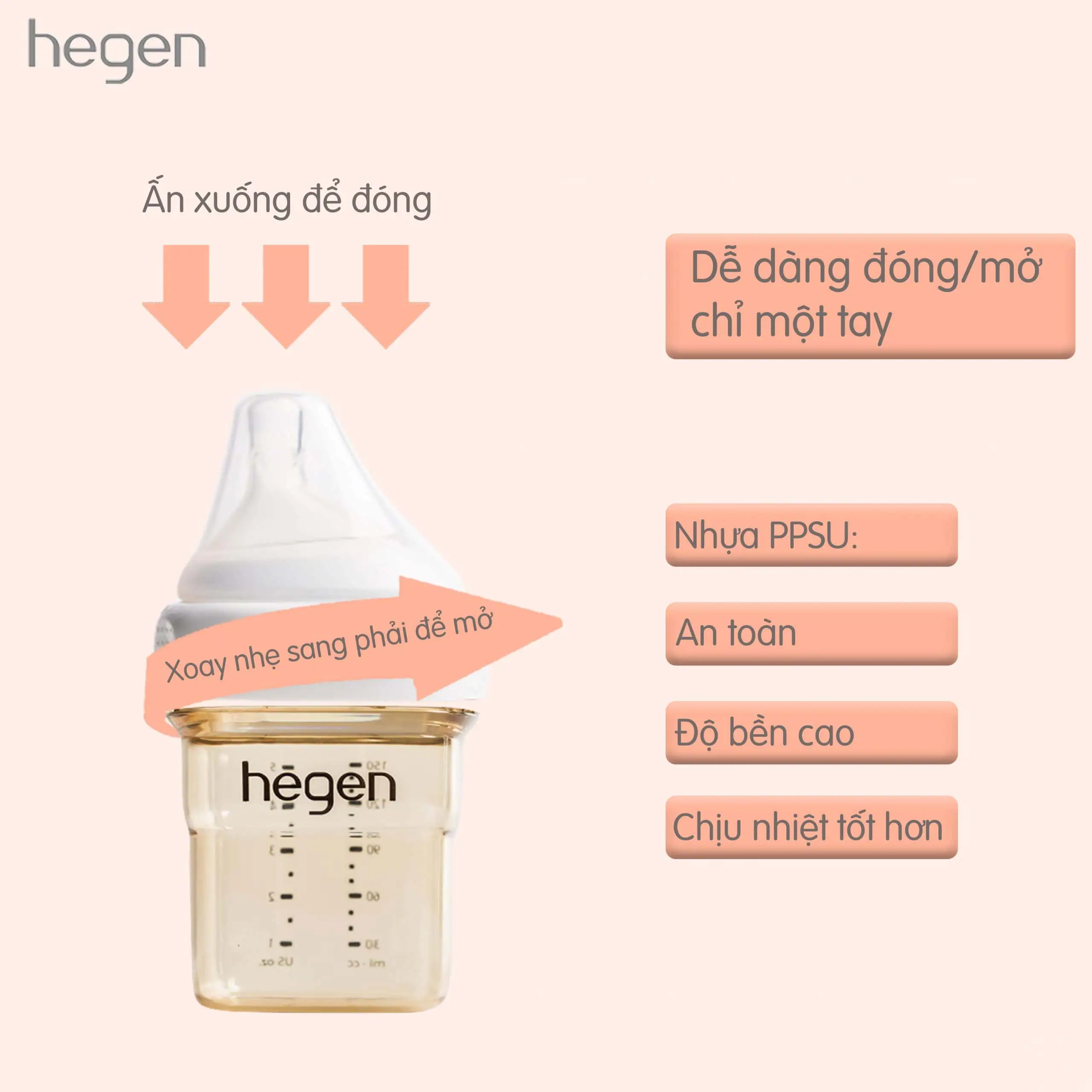 Bình sữa Hegen PPSU 240ml núm ti size M từ 3 – 6 tháng, White