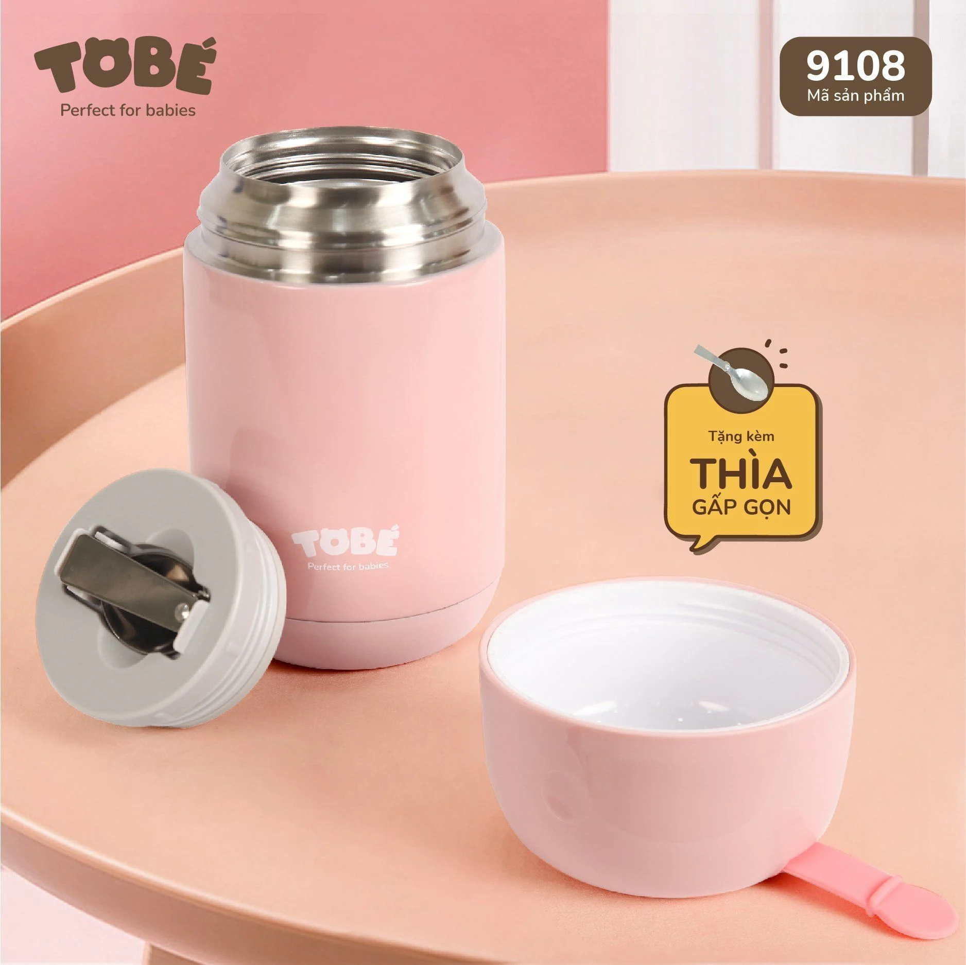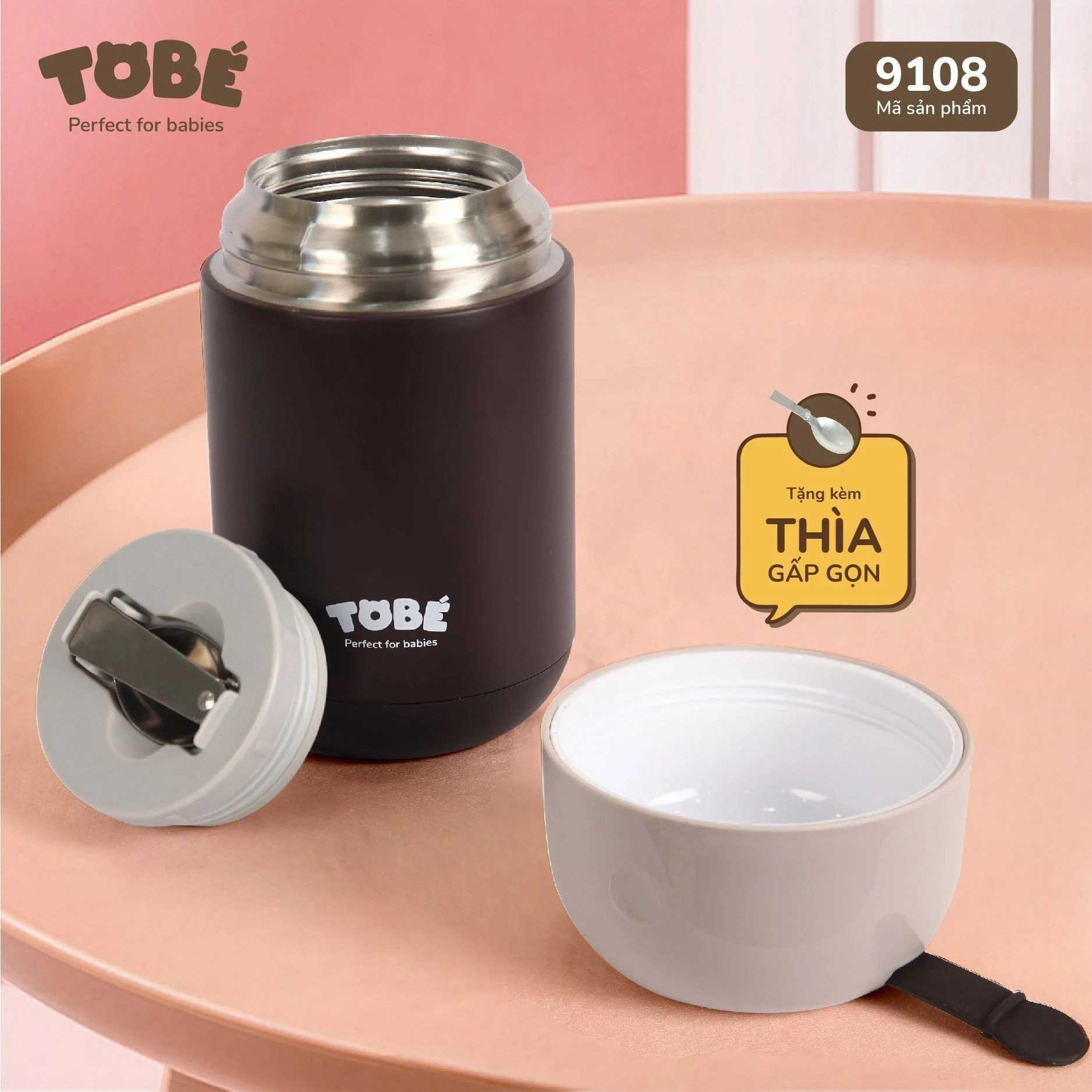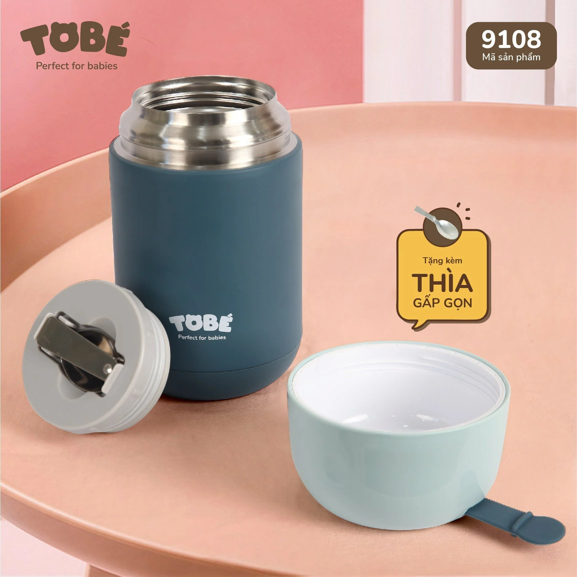 Đặc biệt, ToBé tặng kèm một túi xách giữ nhiệt và một thìa inox gấp gọn, có thể sử dụng phần nắp bình như bát ăn luôn nên rất thuận tiện khi mang đi xa