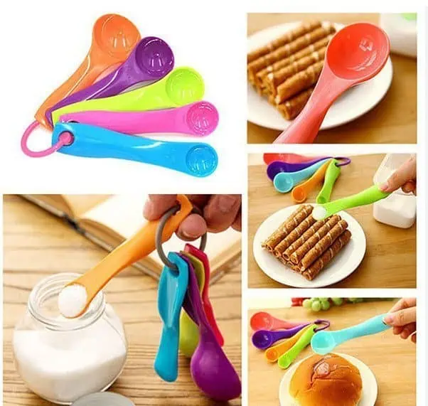 Bộ thìa đong màu sắc, là dụng cụ rất quan trọng với những ai mới làm bánh. Giúp chiếc bánh ngon và đạt độ chuẩn nhất định thì việc đông đo các nguyên liệu làm bánh rất quan trọng, chỉ cần sai đi 1 chút thôi cũng khiến món bánh của bạn trở nên thất bại.