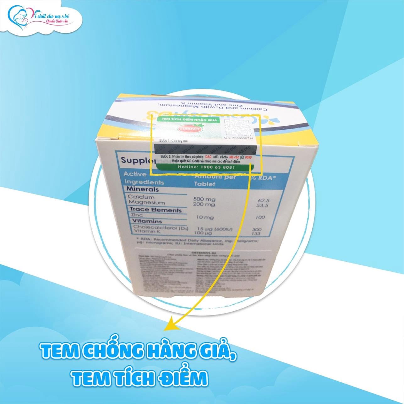 ✔️ Công thức tối ưu: Canxi tinh khiết + Vitamin D3 + Vitamin K giúp hấp thu và sử dụng canxi hiệu quả nhất.