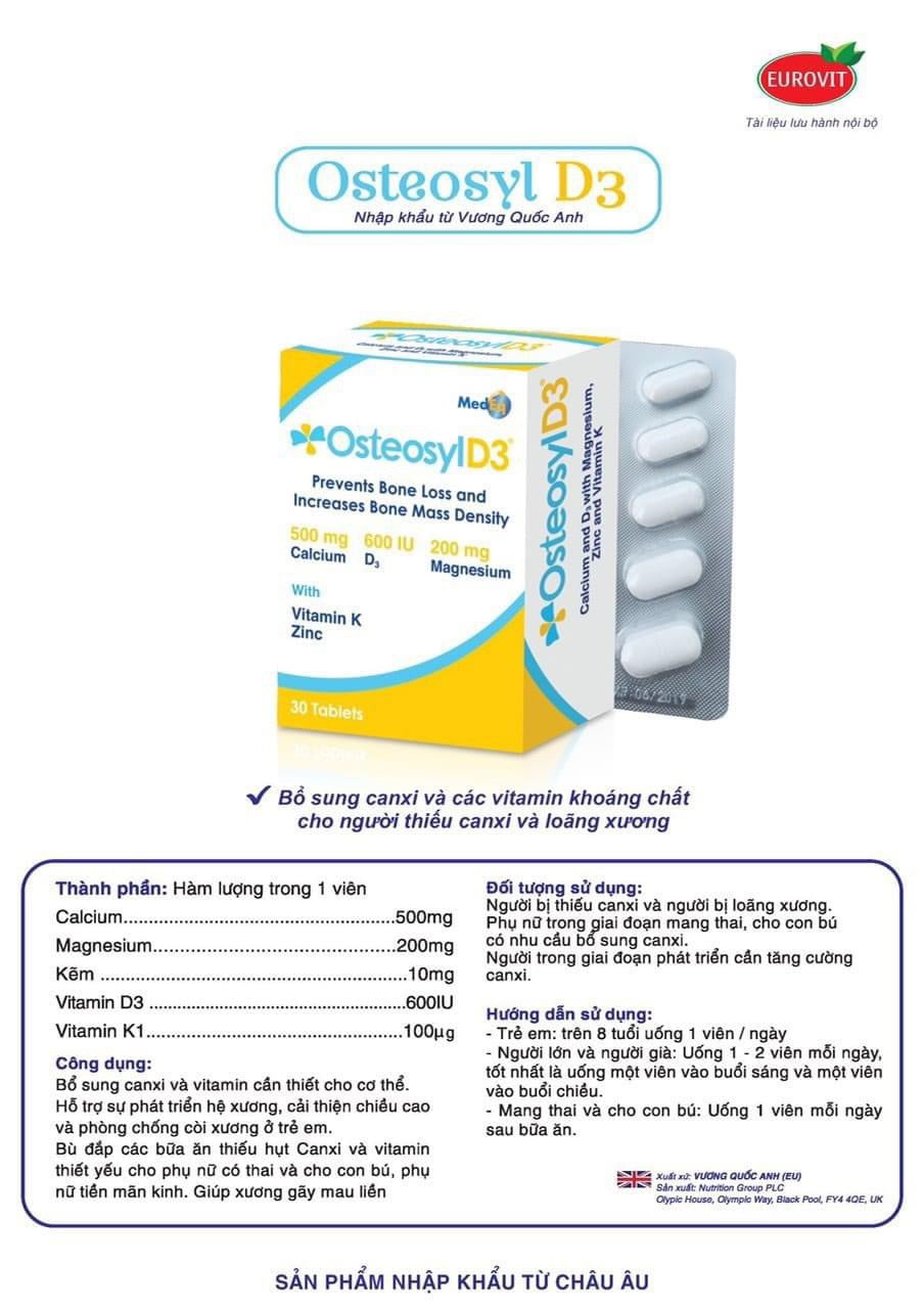 Canxi OSTEOSYL D3 tinh khiết đến từ Anh Quốc, hàm lượng cao lên đến 500mg.