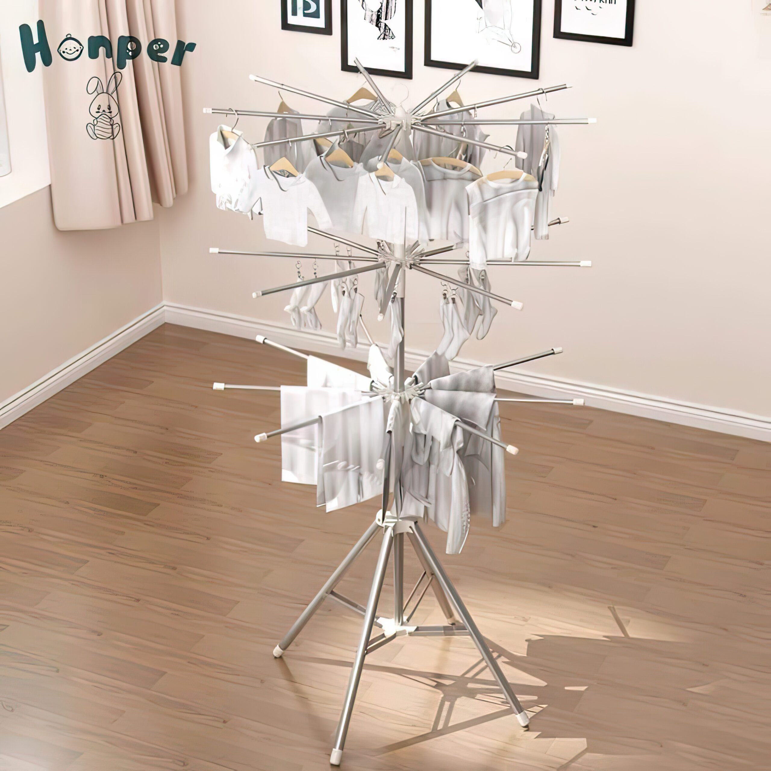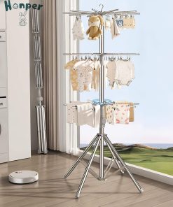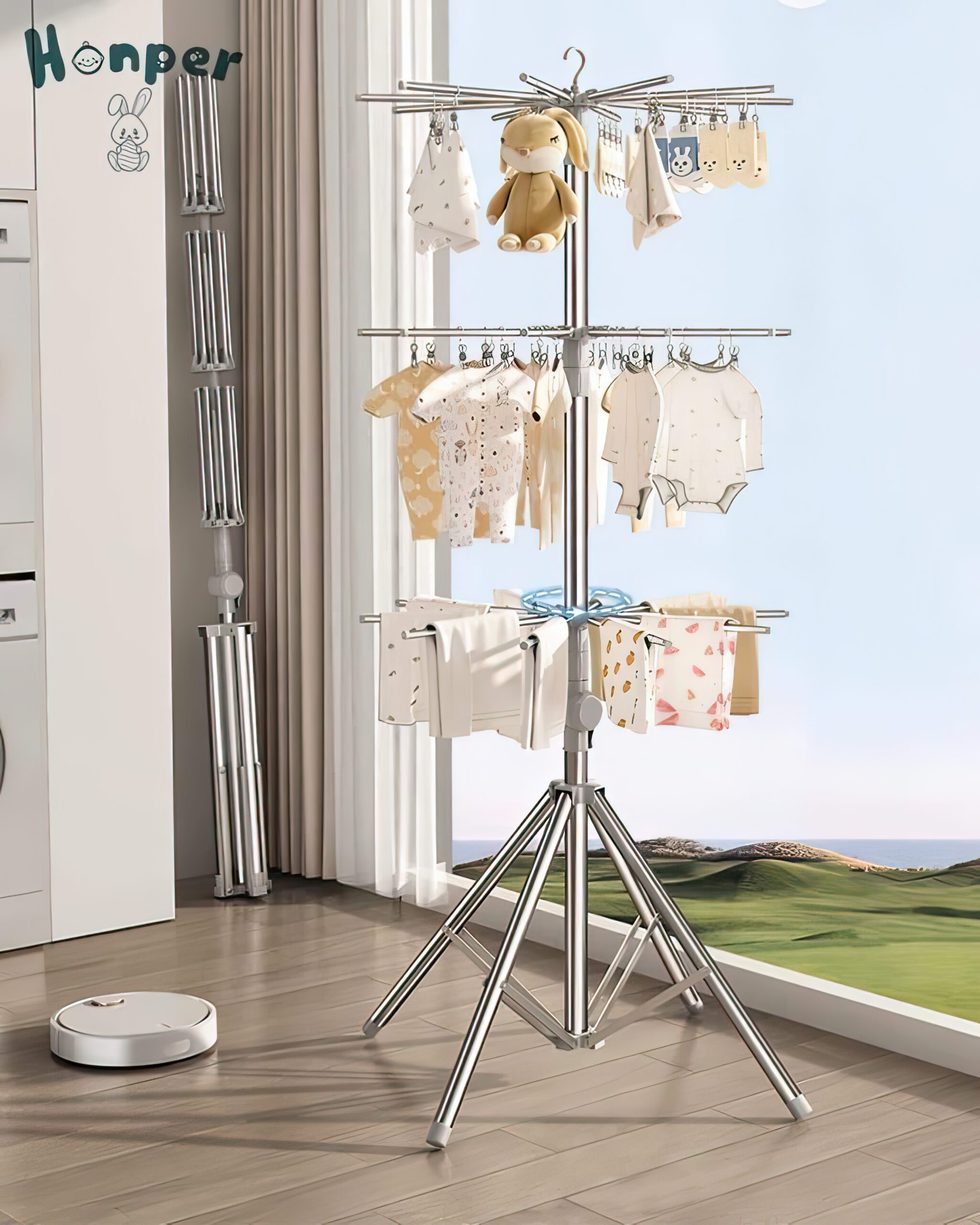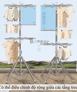 Cây sào phơi đồ inox thông minh gấp gọn đa năng 3 tầng, treo đồ cho trẻ em, bé sơ sinh