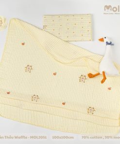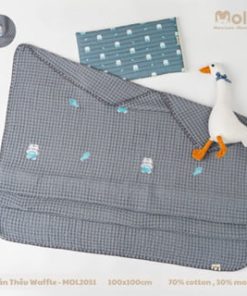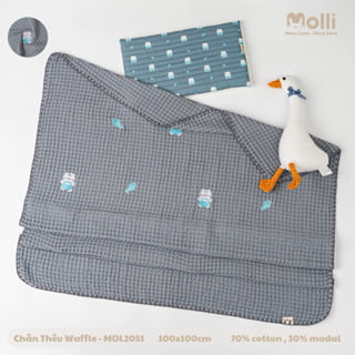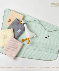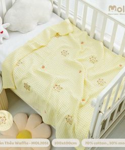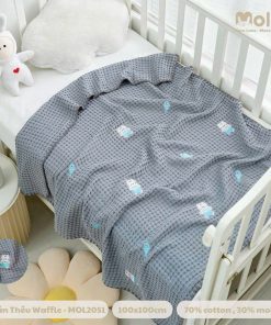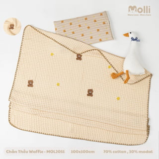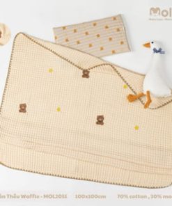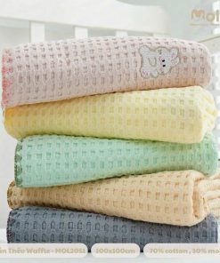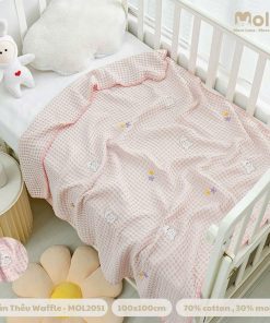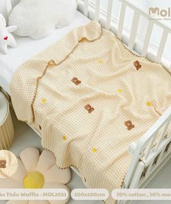 Chăn Waffle Molli được làm từ chất liệu cotton 100% tự nhiên, mang đến sự mềm mại, thoáng mát và an toàn tuyệt đối cho làn da nhạy cảm của bé.