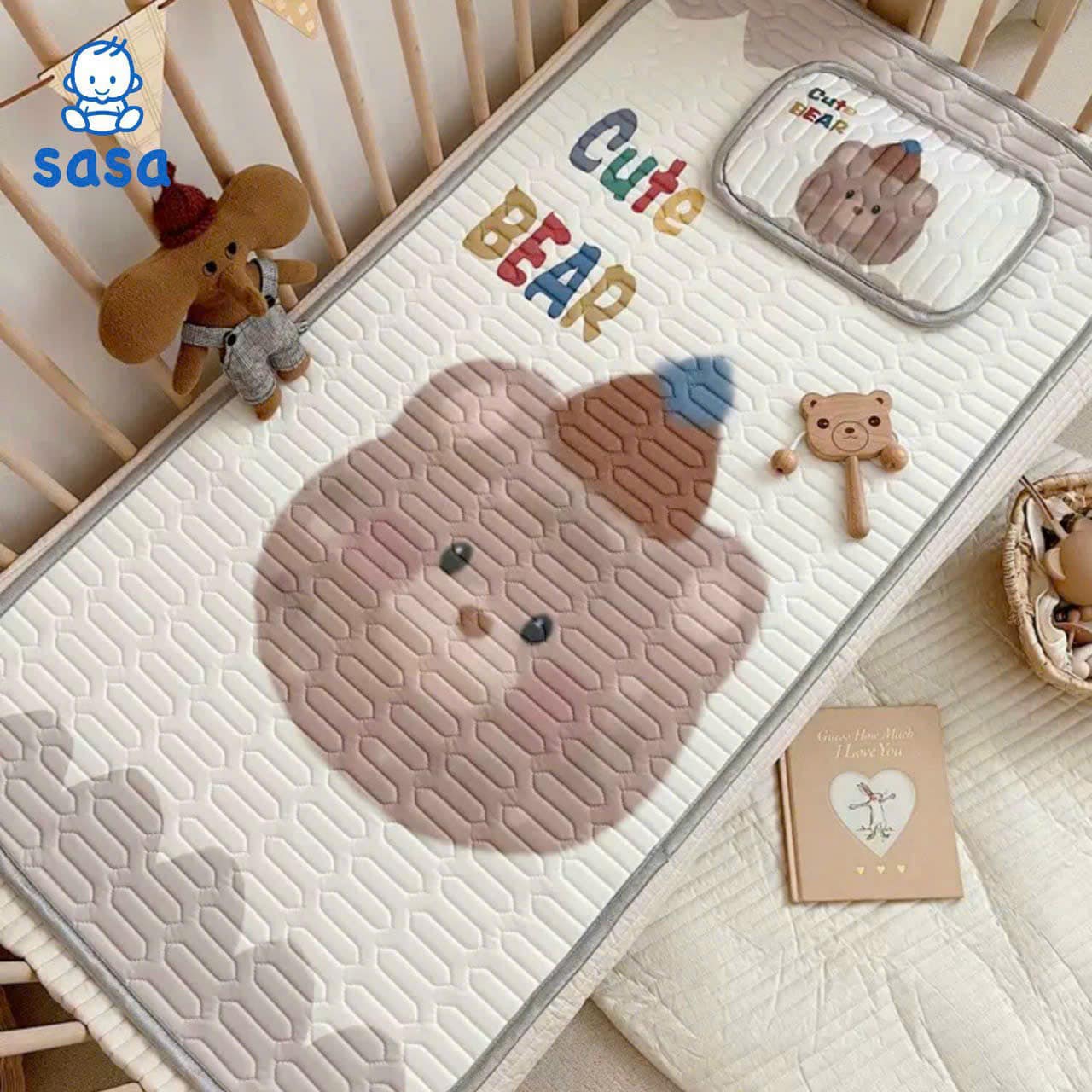 Với chất chiếu điều hoà Latex, bên trong là cao su cách nhiệt dùng được cho cả đông lẫn hè,hỗ trợ bé ngủ ngon giấc.