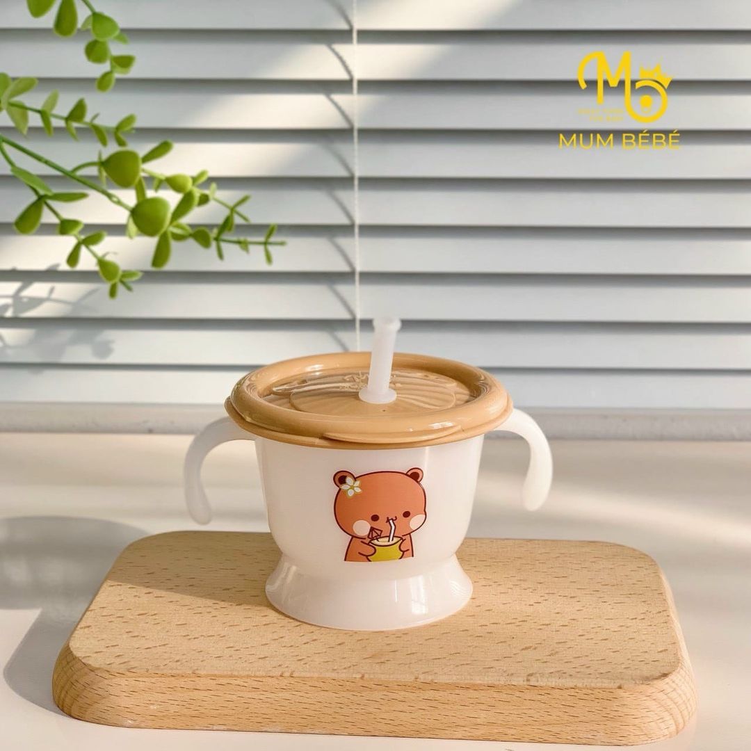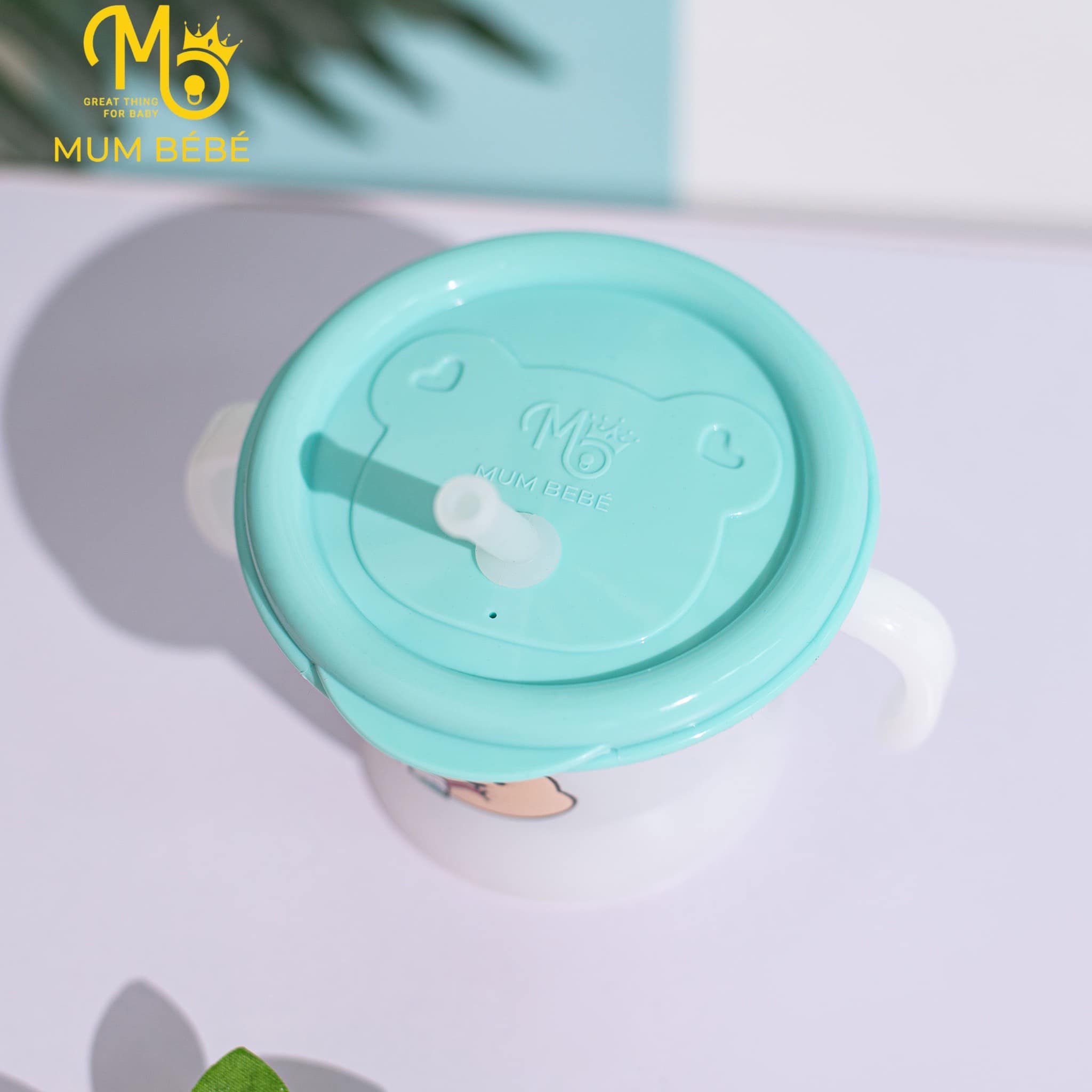 + Giai đoạn 3 (cho bé 9 tháng tuổi): Tháo nắp & bé dùng như cốc có 2 tay cầm.