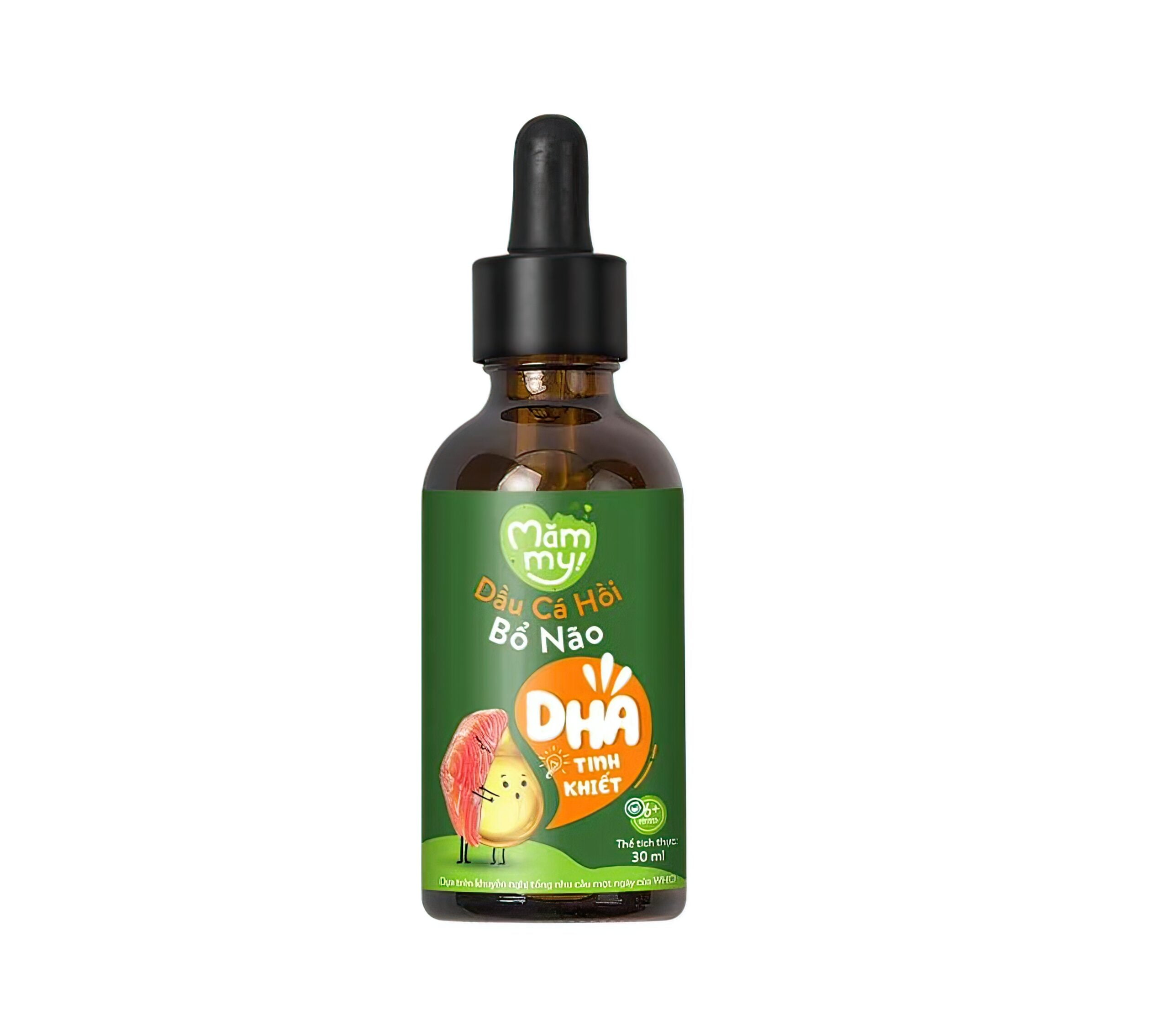 Dầu cá hồi ăn dặm bổ não Mămmy – 1 trong 3 chai của set ăn dặm bổ não của Mămmy
