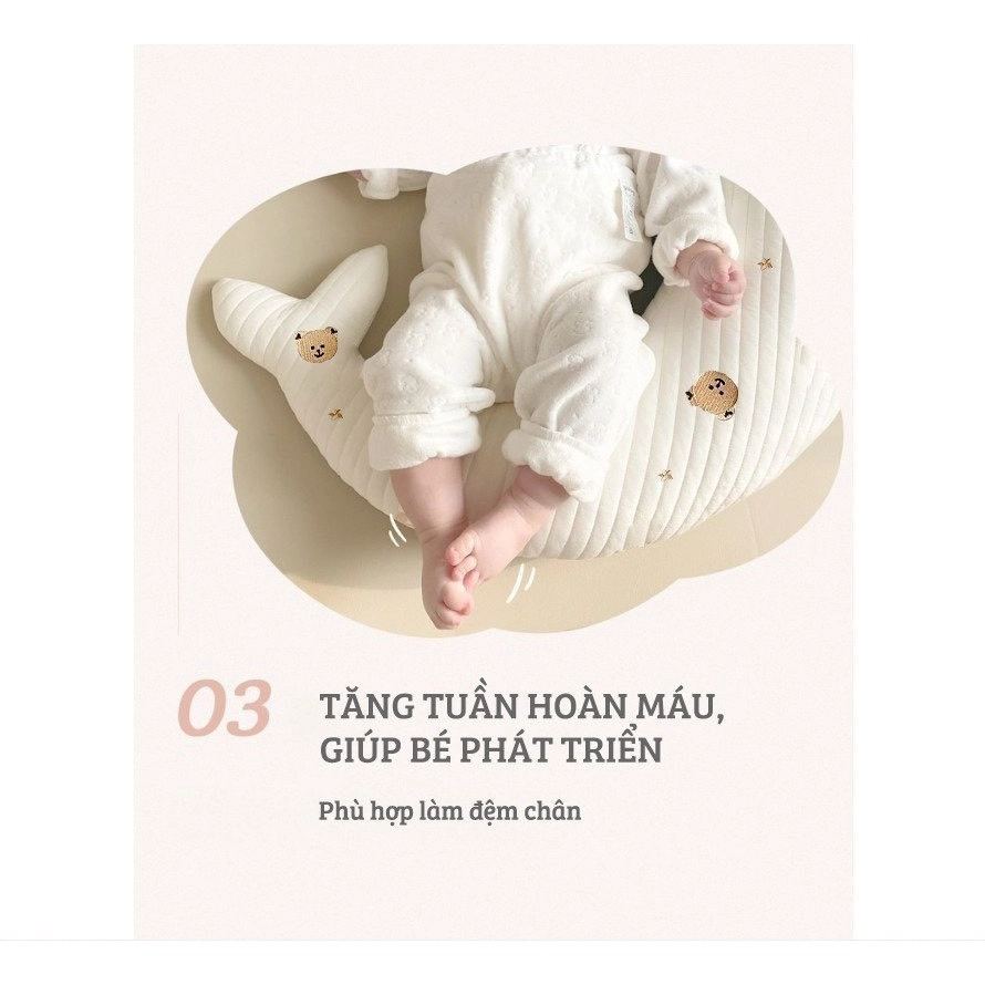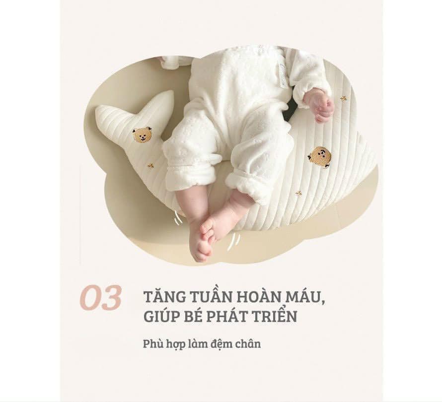- Gối gác chân: Gác chân bé lên gối khi bé nằm ngửa.