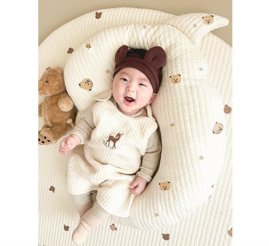- Giảm giật mình: Gối ôm tạo cảm giác an toàn, giúp bé giảm giật mình khi ngủ.