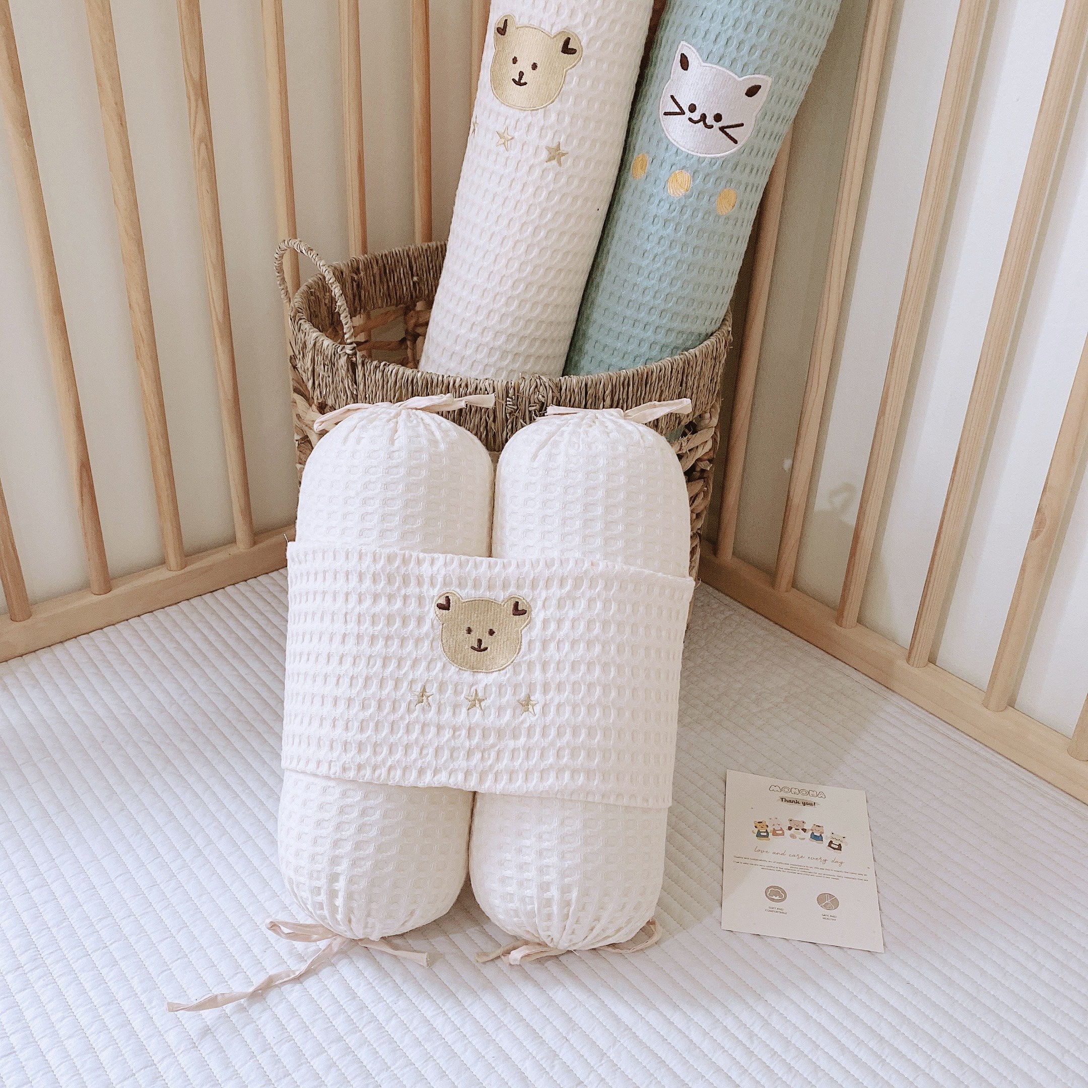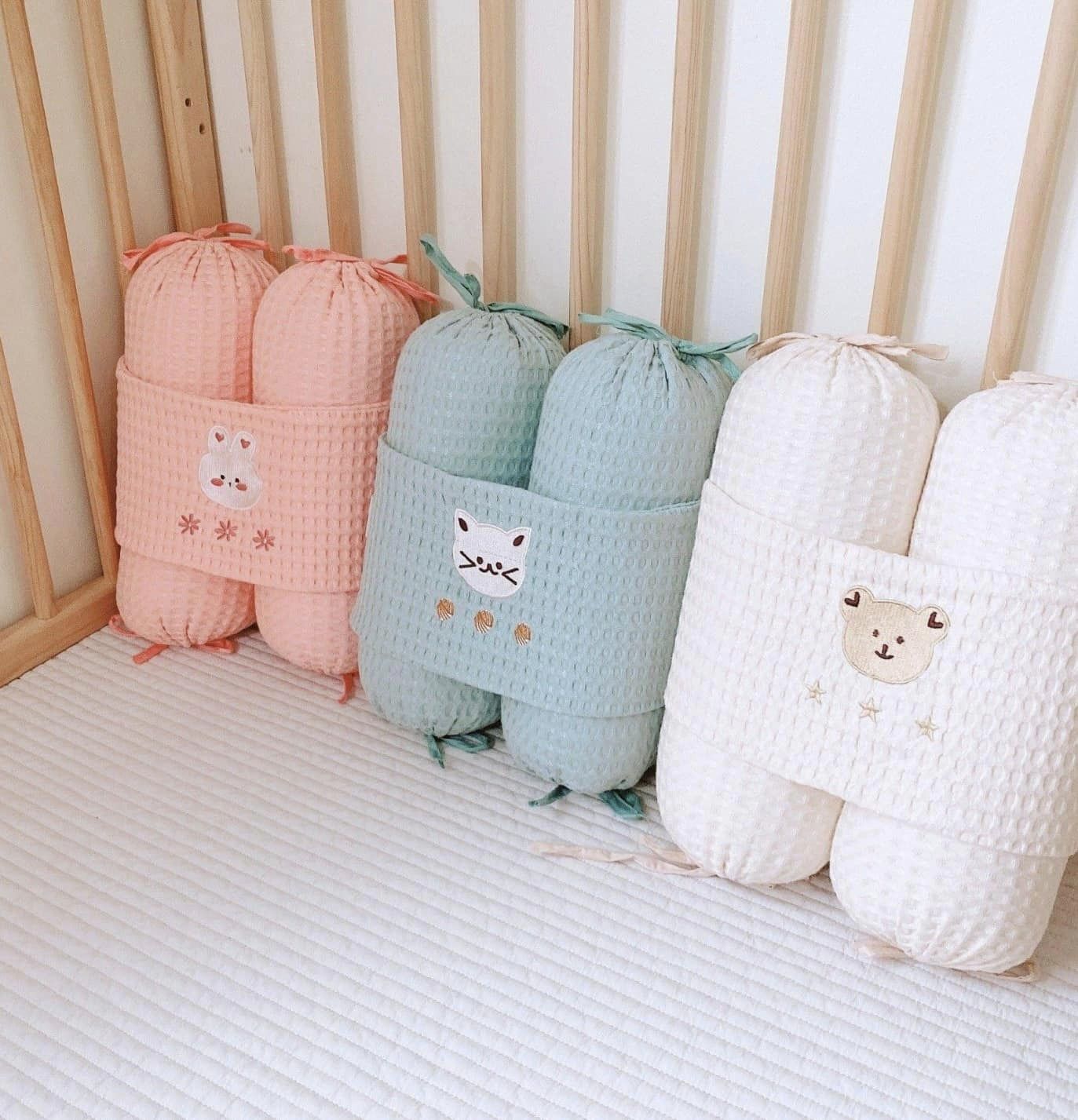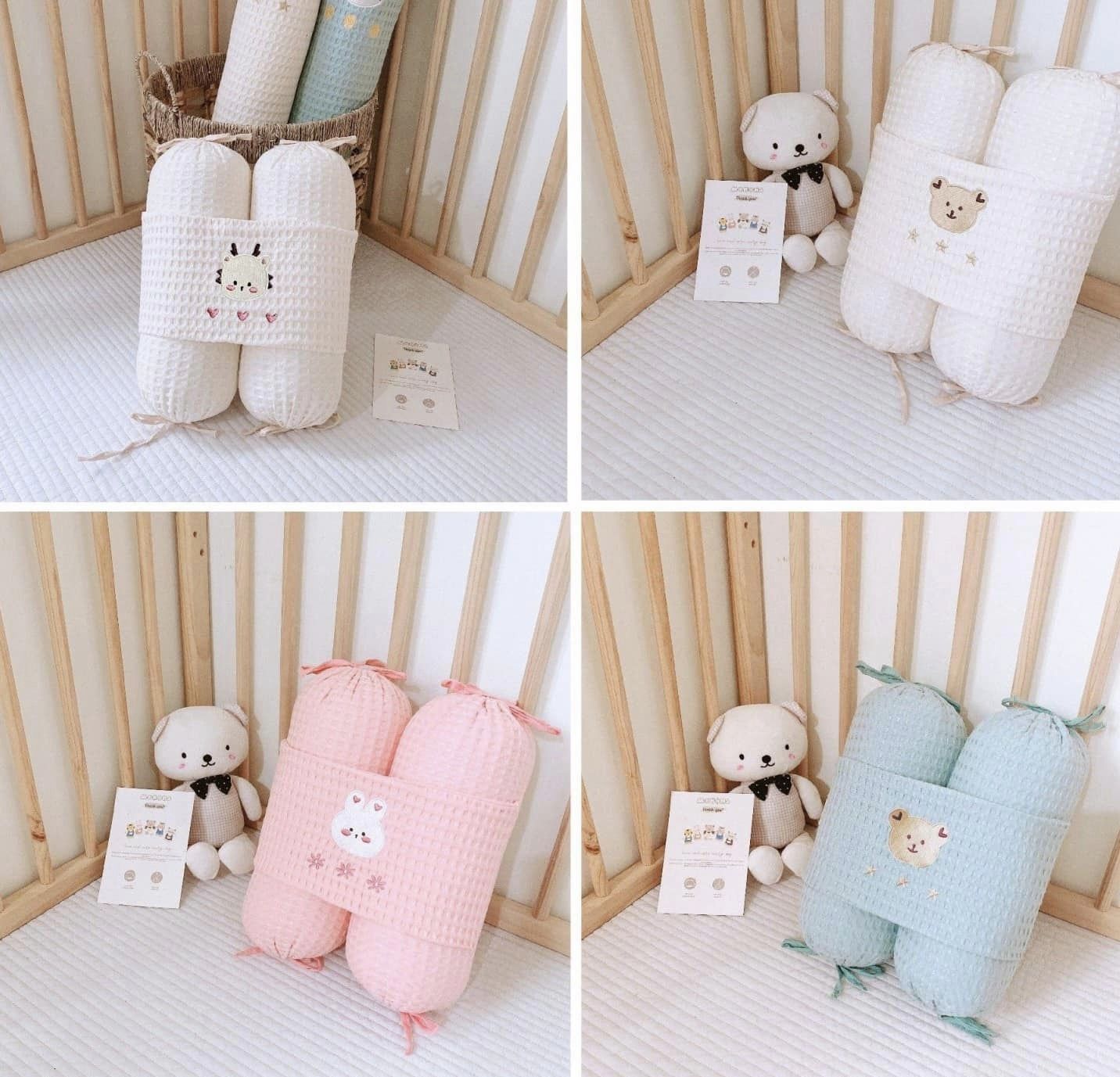 ➡ Bỏ qua được nhược điểm bí nóng, với chất liệu Waffle mẹ sẽ thấy vừa mềm vừa thoáng kể cả sử dụng vào mùa hè  ➡ Họa tiết thêu xinh xắn, tỉ mỉ ➡ Có thể tháo ruột thay vệ sinh dễ dàng Họa tiết: xanh – thêu mèo, kem – thêu gấu, hồng – thêu thỏ.