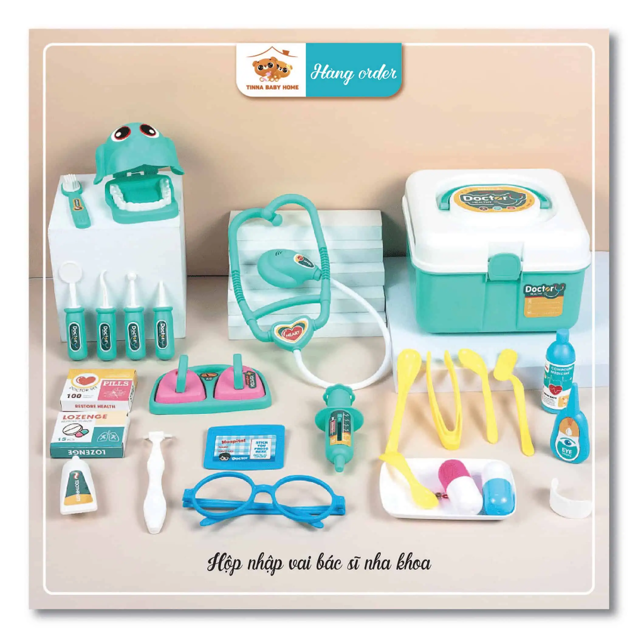 Hộp nhập vai bác sĩ nha khoa kèm mô hình răng ngộ nghĩnh vừa giải trí vừa giúp bé phát triển nhận thức và kỹ năng xử lý, giao tiếp hiệu quả. Bộ đồ chơi nhập vai này còn hỗ trợ bé định hướng nghề nghiệp trong tương lai.