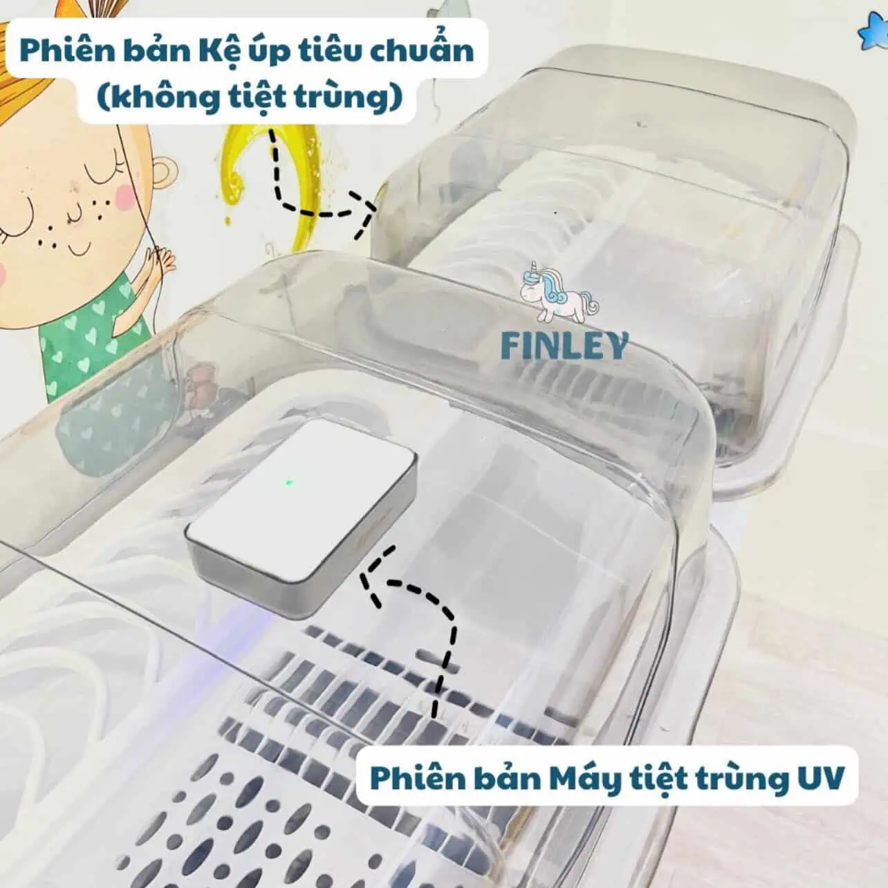 Sau khi tiệt trùng, kệ đóng vai trò như chiếc tủ chén, bảo quản đồ dùng ăn uống bên trong vệ sinh.