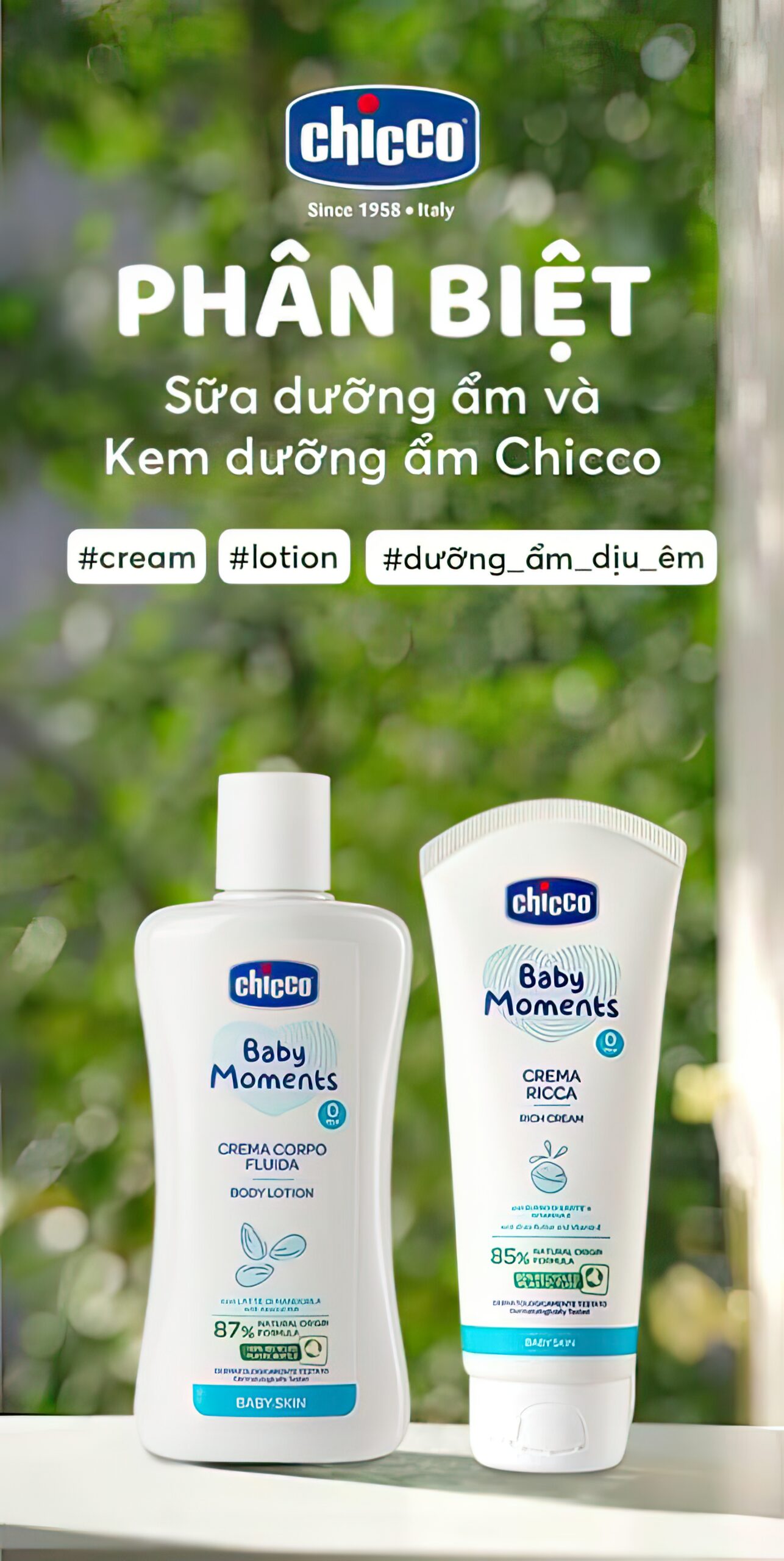 Kem dưỡng ẩm Omega và Vitamin E Chicco cho bé