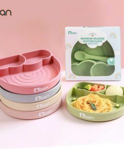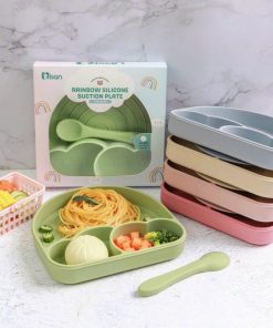 ( Tặng Kèm Thìa ) Khay Ăn Dặm Silicon Misan Có Đế Hít Chống Lật Chống Đổ Chống Trượt Cho Bé Ăn Dặm Mamabu