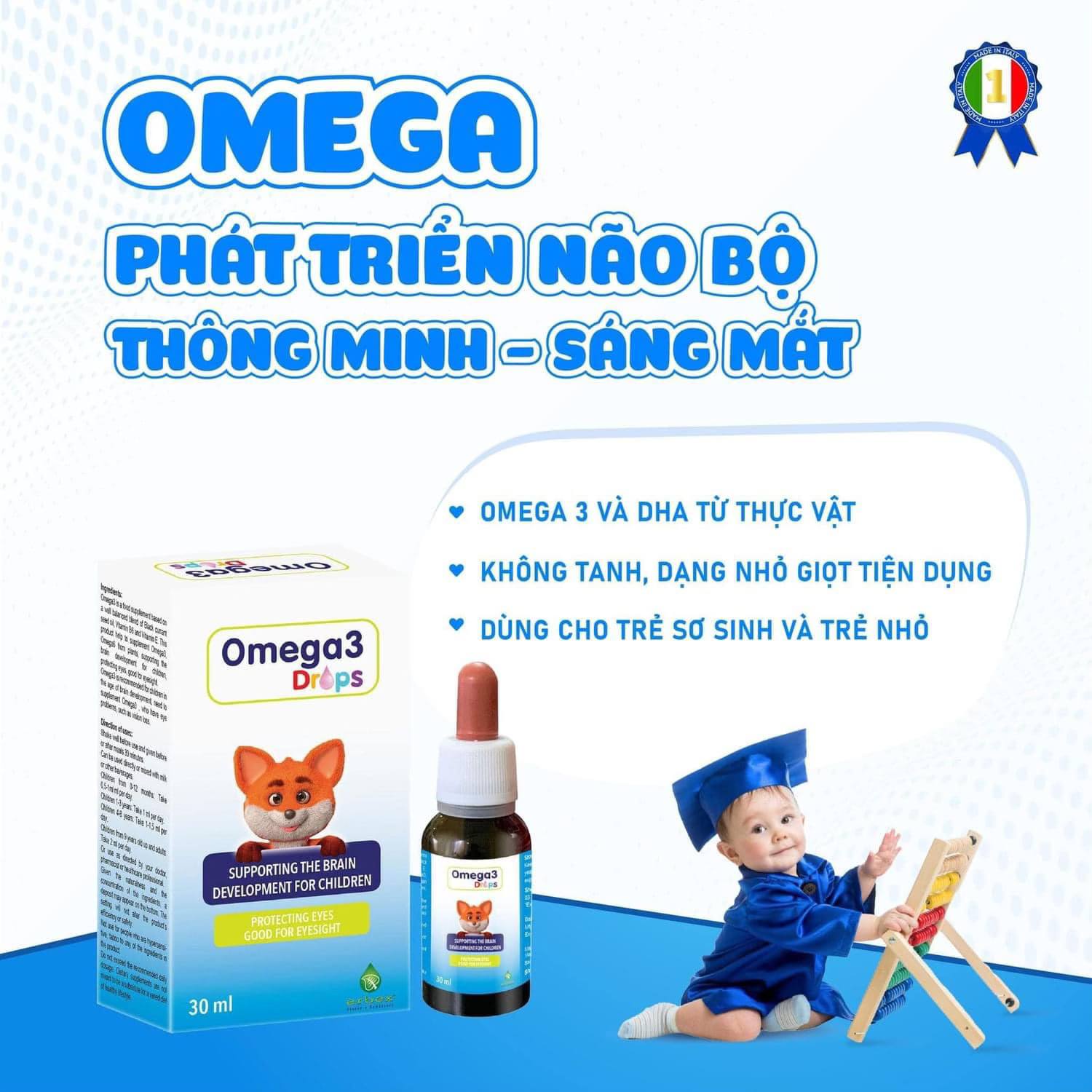 Bổ sung Omega3, Omega6 và DHA từ thực vật, hỗ trợ quá trình phát triển não bộ cho trẻ nhỏ, hỗ trợ bảo vệ mắt, tốt cho thị lực