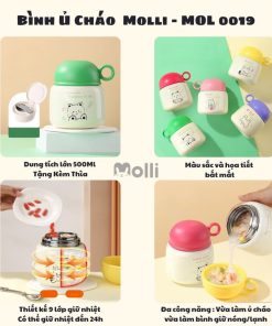 Bình ủ cháo giữ nhiệt 9 lớp Molli (tặng kèm thìa) – 500ml