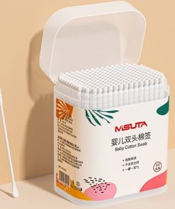 – Tăm bông Misuta cho bé sơ sinh với 2 đầu tăm thiết kế hình dáng khác nhau: 1 đầu tròn, 1 đầu dẹt, tiện lợi hơn trong việc chăm sóc bé.