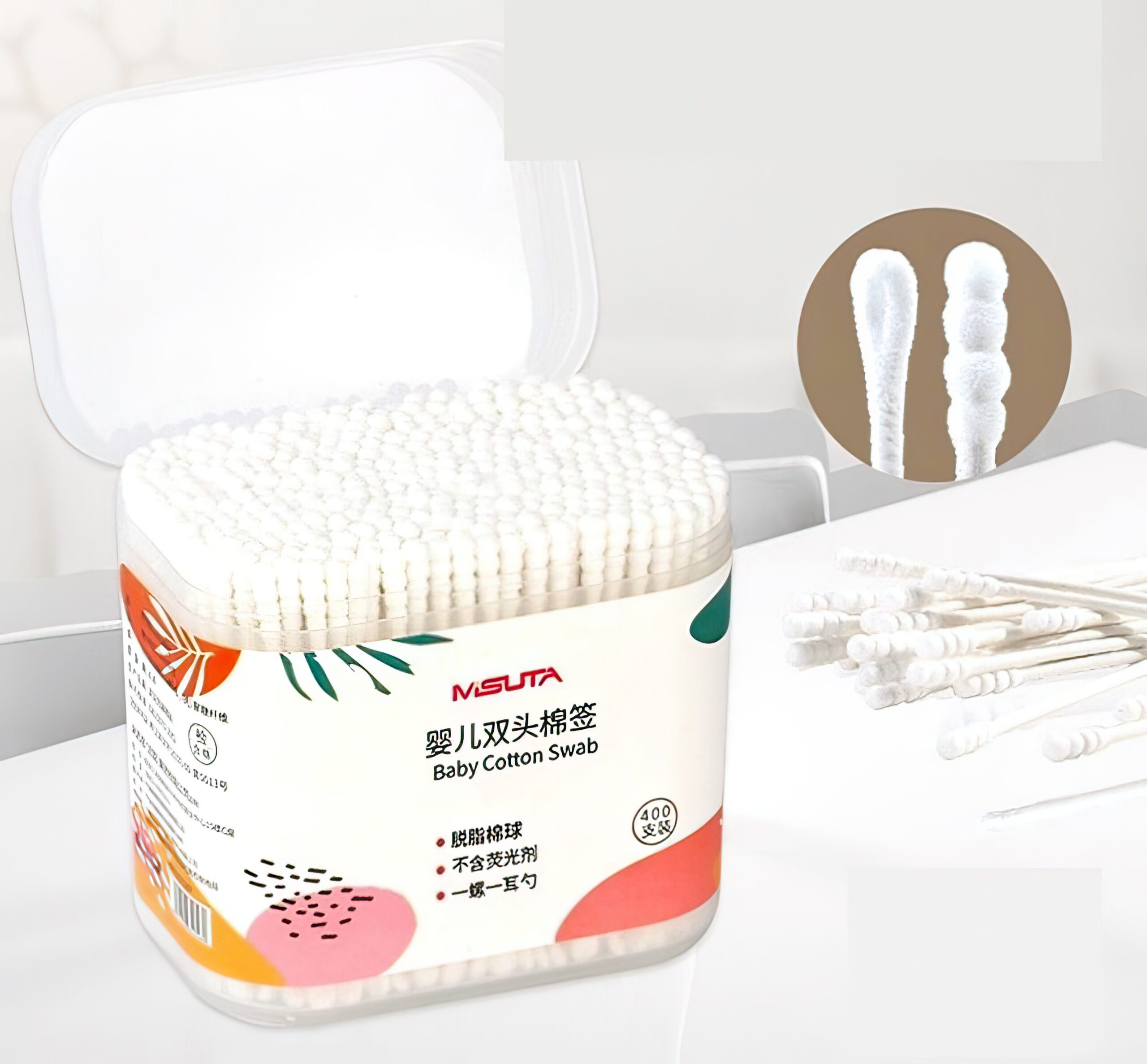✅Tăm Bông MISUTA hộp 400c, chất liệu bông tự nhiên, vệ sinh tai mũi họng toàn diện