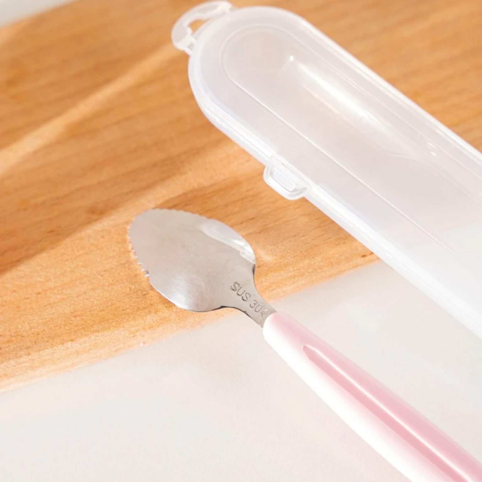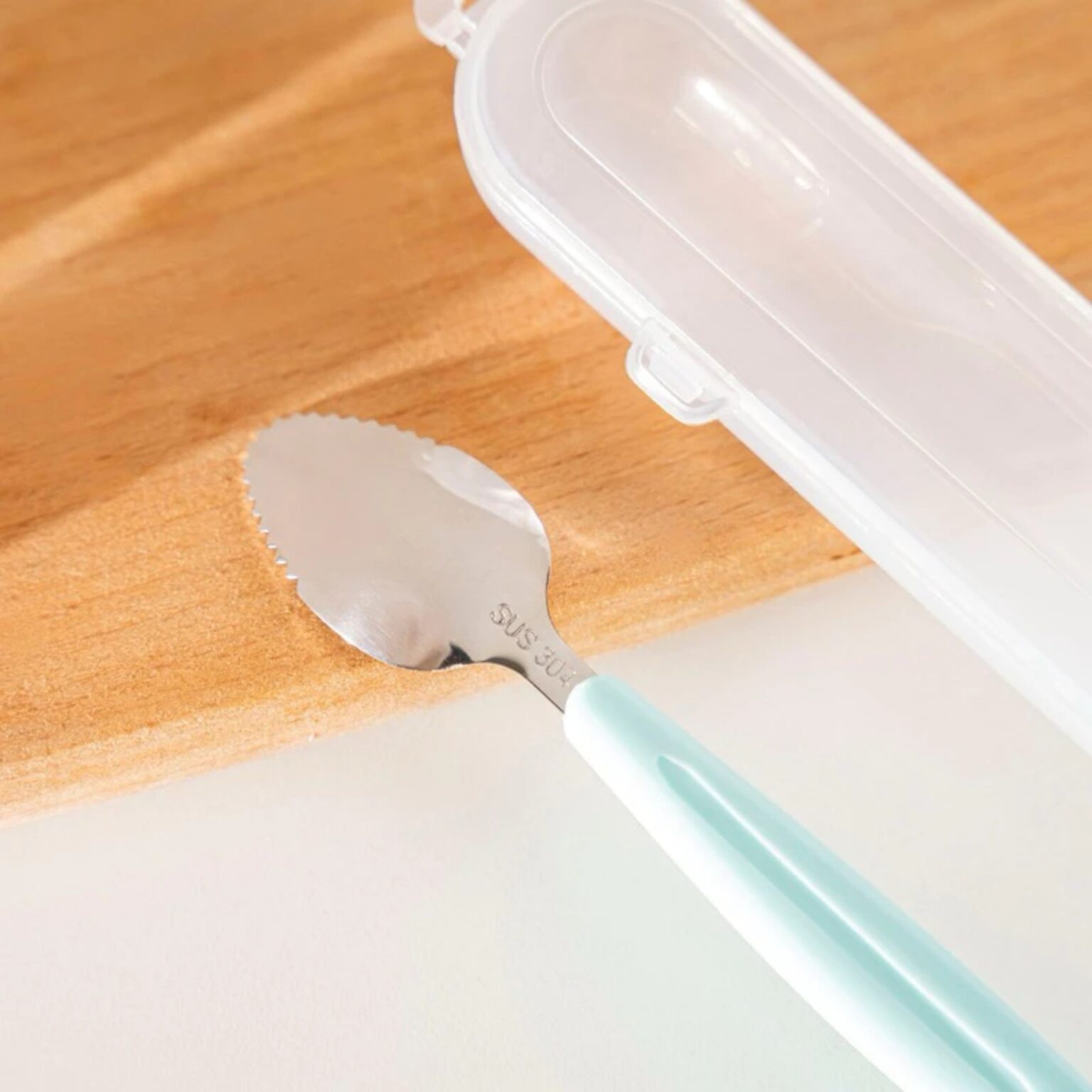 – 1 đầu là inox 304 có các răng cửa nhỏ. chuyên dùng nạo, vét hoa quả 1 cách dễ dàng