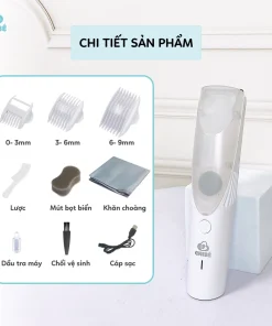 – Quy cách: 1 thân máy, 3 cữ gá, 1 cáp sạc USB, 1 miếng mút xốp, 1 lược cắt, 1 lọ dầu tra máy, 1 khăn choàng cổ