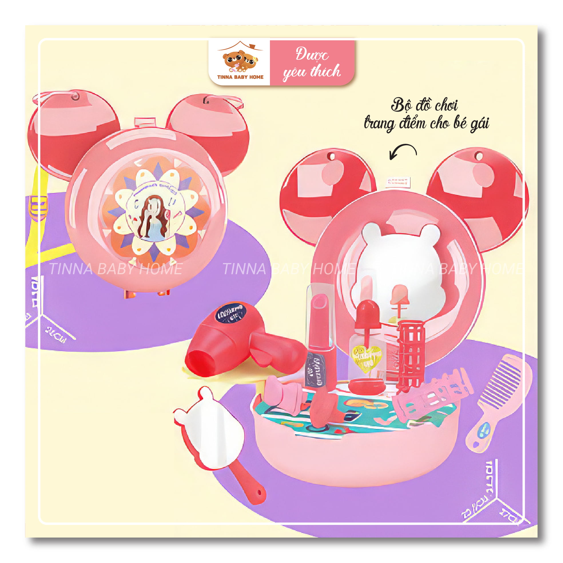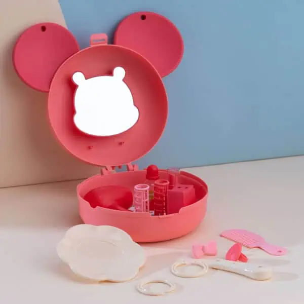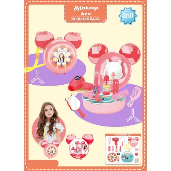 Túi xách tai thỏ trang điểm là sản phẩm phù hợp cho bé tập trang điểm. Qua trò chơi, bé phát triển khả năng giao tiếp.